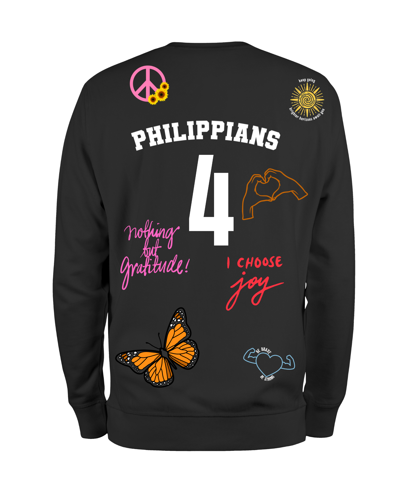 Featuring Philippians 4 on the back, this piece speaks to unwavering faith and the strength to overcome anything. Whether you're on a journey of self-discovery, embracing your worth, or simply walking in divine alignment, this sweatshirt is here to remind you: you are blooming exactly where you are meant to be.